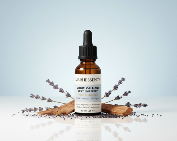 GrĂące Ă notre SĂ©rum Calmant Ă la nigelle, lavande vraie et cĂšdre de lâAtlas, votre cuir chevelu est apaisĂ©, purifiĂ© et rééquilibrĂ©. Il aide Ă rĂ©duire les dĂ©mangeaisons, les pellicules et lâexcĂšs de sĂ©bum tout en respectant la fibre capillaire.